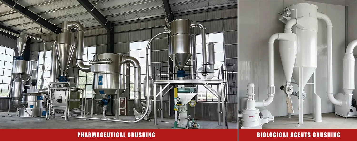 Alimentare, farmaceutico, alimenti per animali domestici, prodotti chimici, fertilizzanti, agenti biologici, acquacoltura, zootecnia, materiali per batterie al litio, gomma e materiali super duri, metallurgia delle polveri e altri settori per la frantumazione dei materiali.