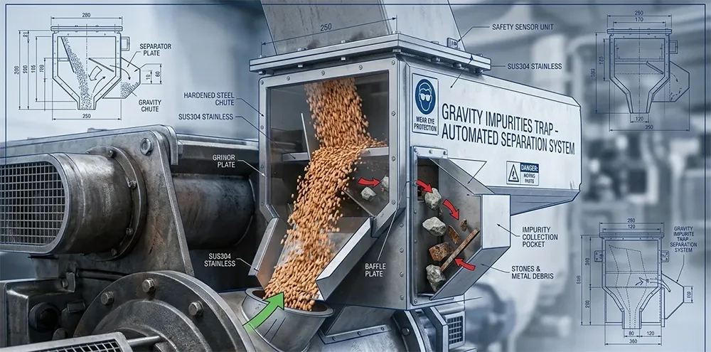 R: Equipaggiamo una trappola per impurità a gravità all'ingresso per rimuovere i detriti pesanti prima che entrino nella camera.