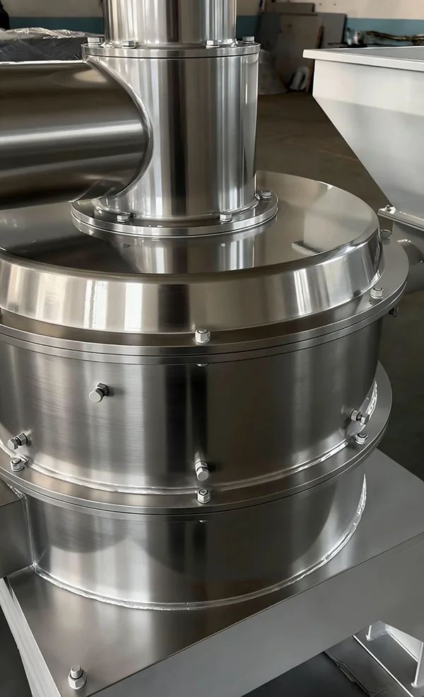 Il Polverizzatore Ultrafine in Materiale Ultraduro non utilizza vagli o setacci perché si usurerebbero o si intaserebbero immediatamente. Invece, una ruota classificatrice interna ad aria separa la polvere. È possibile regolare la dimensione delle particelle modificando la velocità del motore del classificatore tramite un inverter di frequenza. Ciò garantisce una distribuzione granulometrica ristretta per materiali di alto valore.